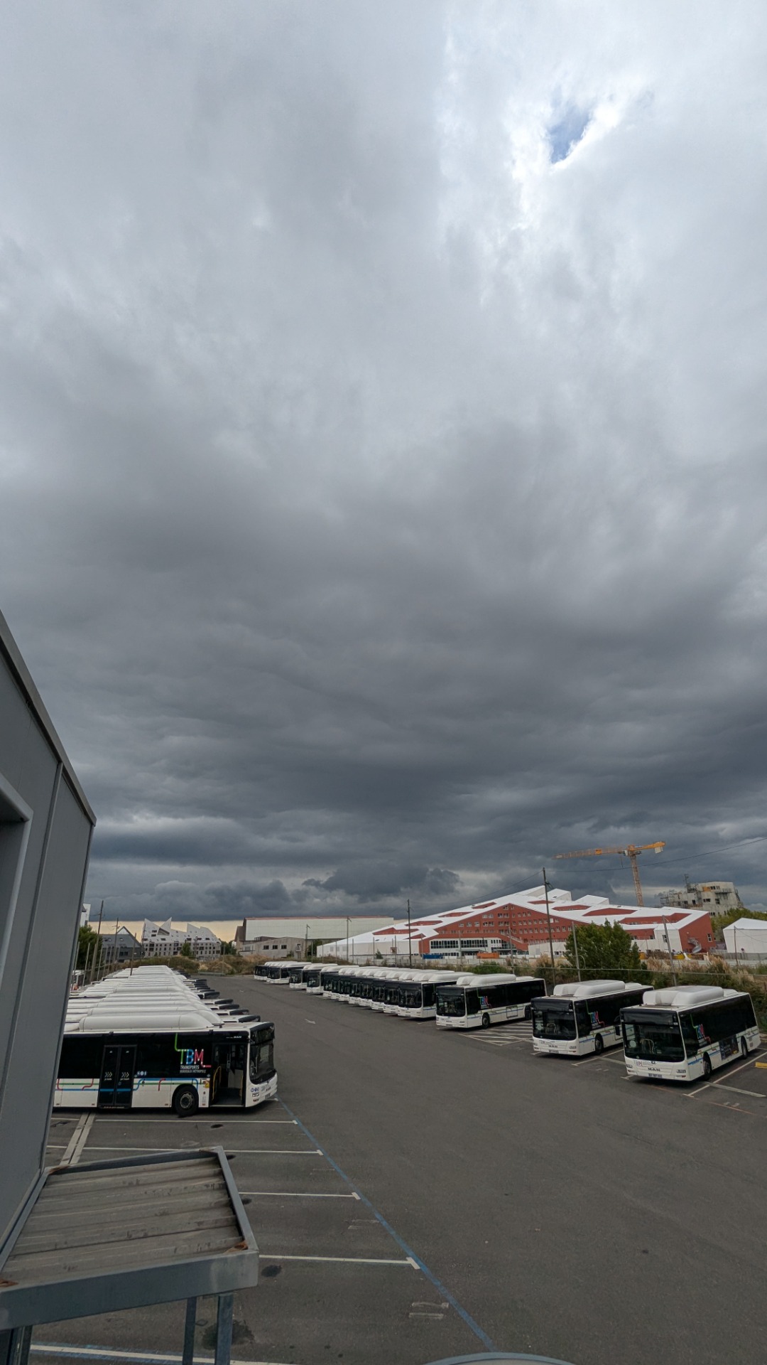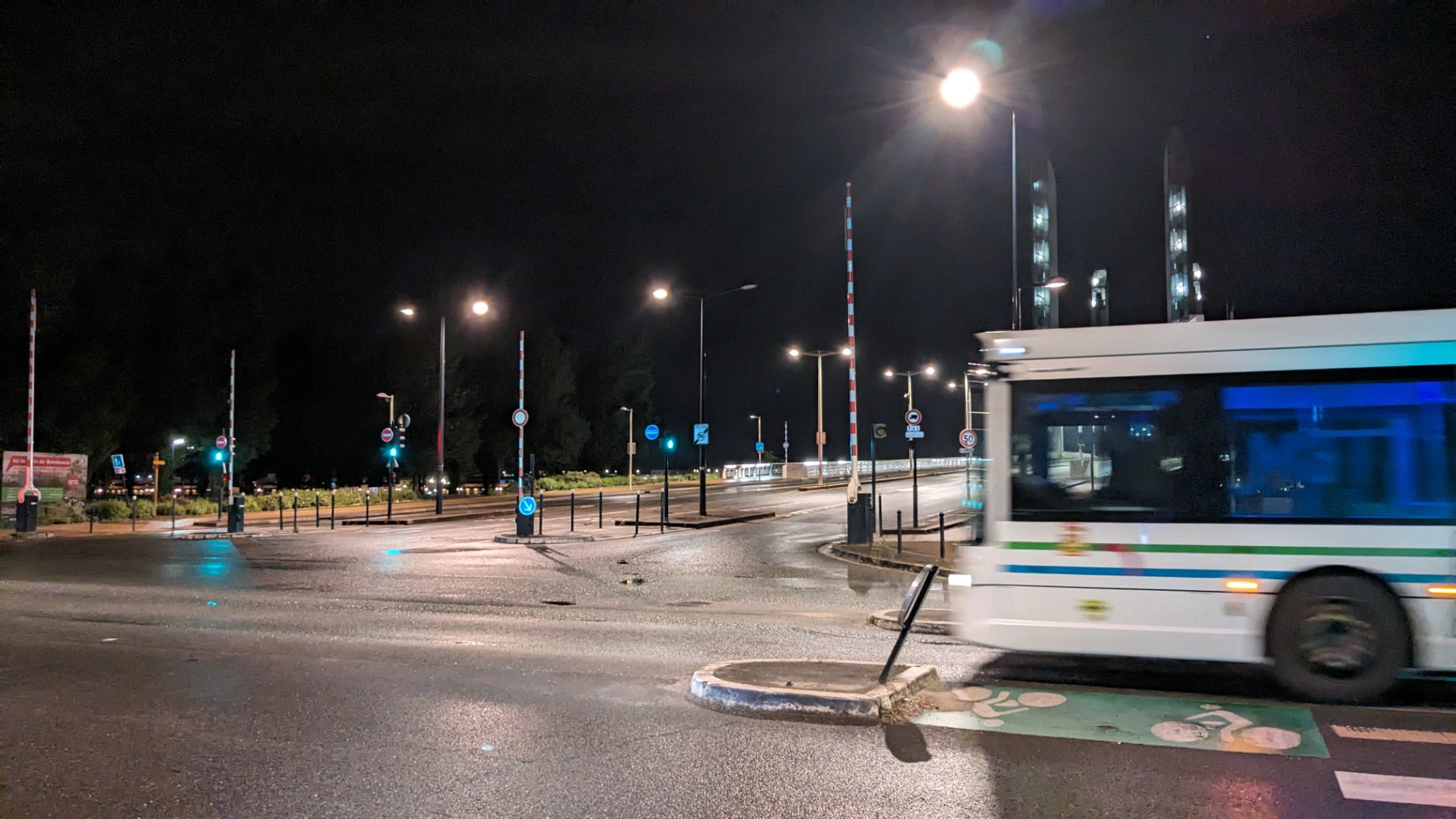 Définition familière : dans un bus, petit comptoir séparant les passagers du conducteur